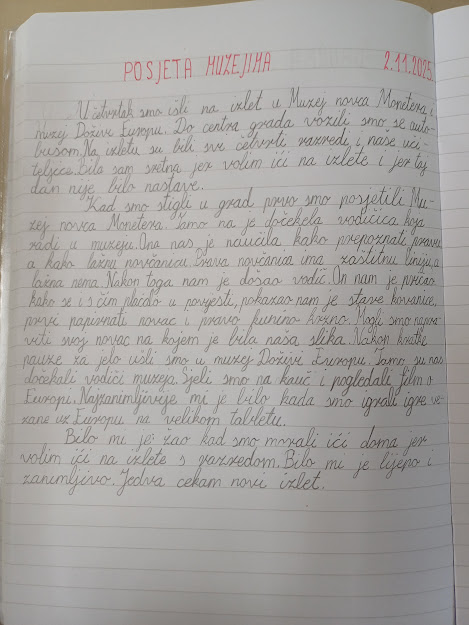 Povodom Svjetskog dana štednje, učenici 4.razredu su 30.listopada 2025.godine posjetili Moneterru-Muzej novca Hrvatske narodne banke i centar “Doživi Europu”. Cilj je bio upoznati učenike s poviješću novca i njegovim razvojem, te europskom kulturnom baštinom.