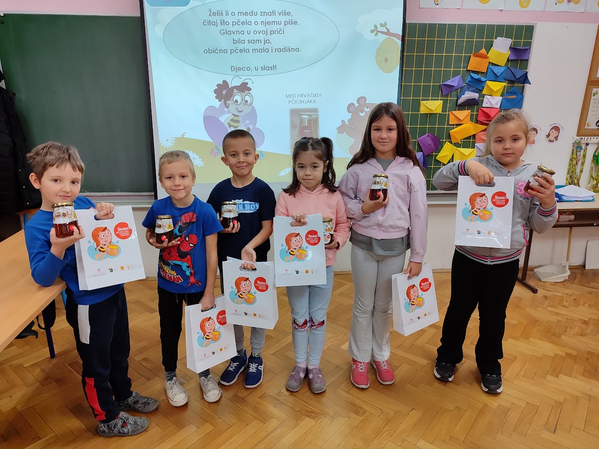 U ponedjeljak, 8. prosinca, u našoj je školi obilježen Medni dan. Učenici prvih razreda sudjelovali su u zanimljivim aktivnostima sa svojim učiteljicama te su im podijeljeni promotivni paketići koji su sadržavali teglicu meda i slikovnicu Pčelica Jelica i Medo Edo.