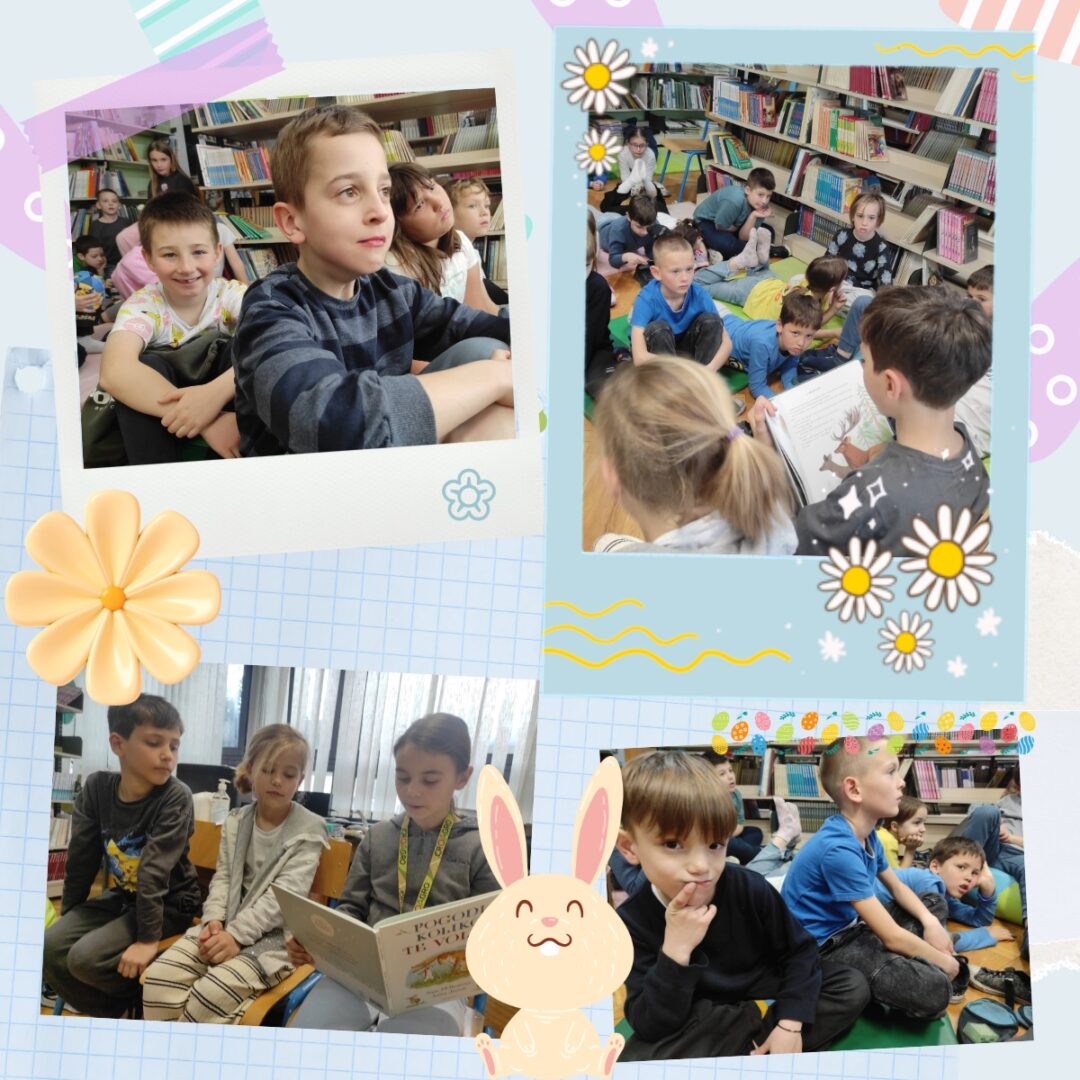 Uoči Uskrsa i proljetnih praznika učenici 2. c razreda Viktor Puškaš, Nina Vasc i Nora Zrnec razveselili su učenike 1. i 2. razreda čitanjem prigodnih priča. Učenici su čitali priče Pogodi koliko te volim Sama McBratneya i Slijedim svoj san Simona Philipa.